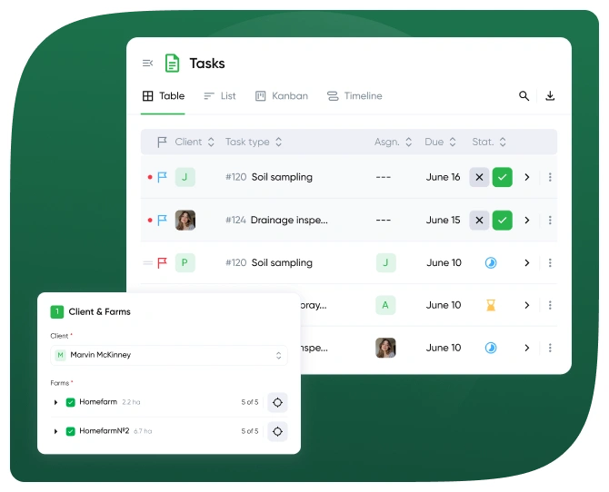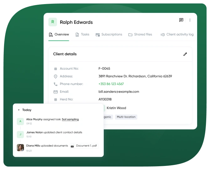 Collaborate with farmers through shared access and built-in client management tools.